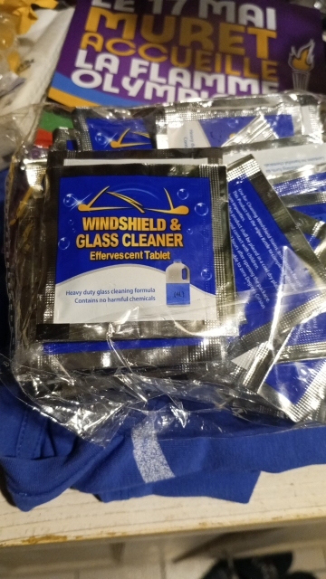 Received items very quickly. Tablets look much bigger than in the listing. The tablets don’t effervescence as said in the listing however it completely disolves over time. . Will try on windscreen later but ok on glass at home.