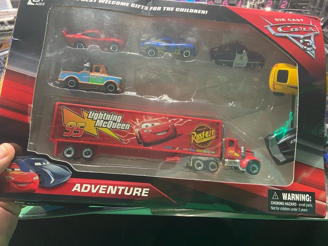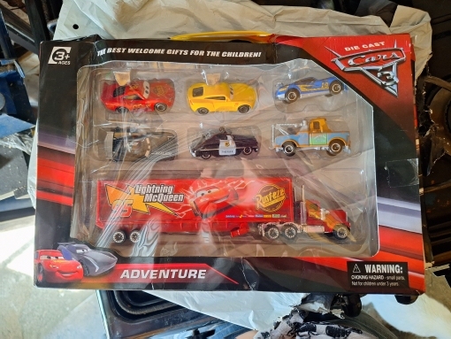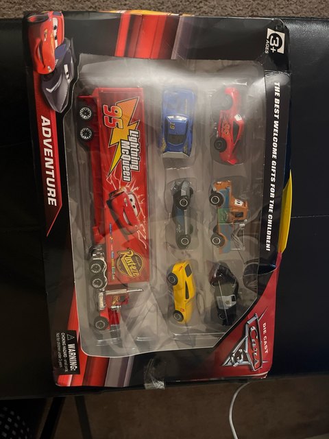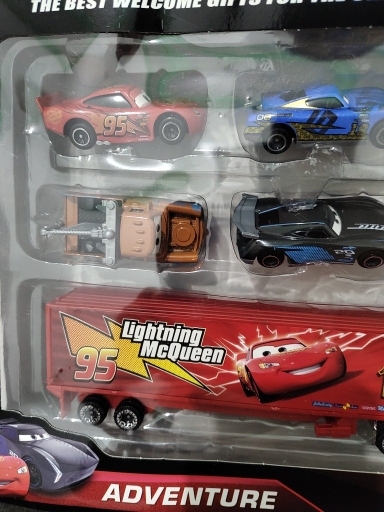 Shipping was extremely quick. Lightening McQueen’s eye sticker was peeling. The other cars look great. I was refunded the cost of the entire item.