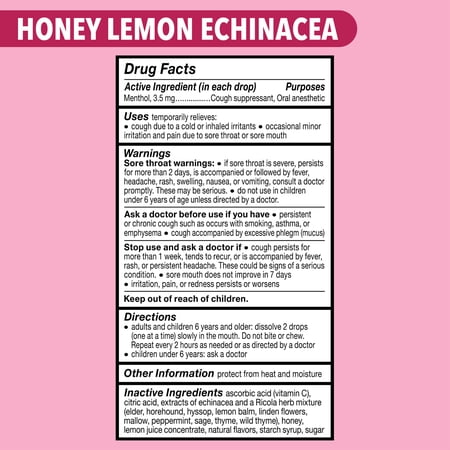Experience cough and sore throat relief with Ricola Honey Lemon Echinacea Cough Drops. Each drop delivers menthol to soothe minor cough and throat irritation. Ricola Cough Drops help ease throat irritation, discomfort, and dryness to help you speak more comfortably. Made with Ricola's signature...