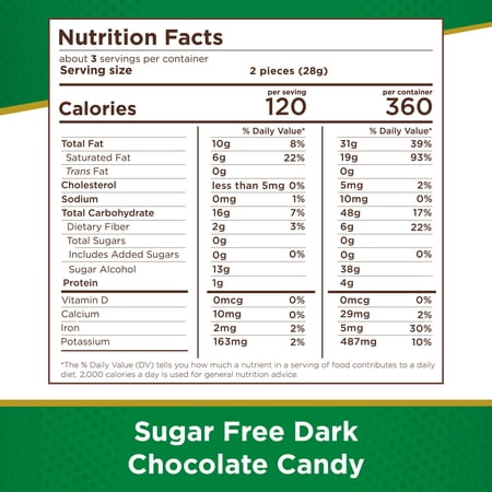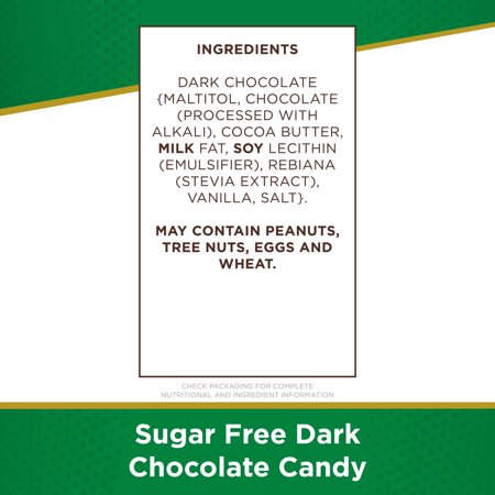 RUSSELL STOVER Sugar Free Dark Chocolate Candy, 3 oz. bag, contains about 6 individually wrapped pieces of decadent solid dark chocolate candy. Made with Stevia extract, a plant-based sweetener, these dark chocolate bites deliver the sweetness you crave without any added sugar. Share them with...