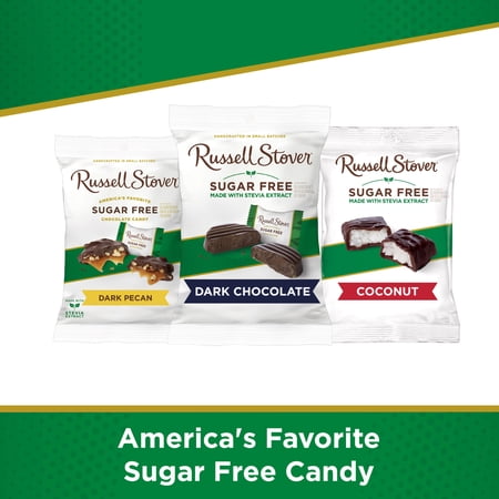 Discover the Unbelievable Taste of RUSSELL STOVER Sugar Free Assorted Dark Chocolate Candy & Chocolate Candy - where zero sugar meets seriously delicious! Each 15.7 oz. bag contains about 29 individually wrapped pieces of five sugar free favorites: Caramel, Peanut Butter, Pecan Delight, Coconut,...