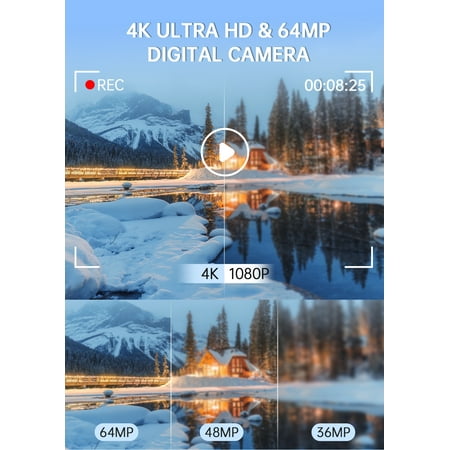 4K & 64MP Digital Camera – Capture Every Moment : Experience stunning 4K video recording and 64MP high-resolution photos with a CMOS sensor for crystal-clear images. Designed for kids, teens, and beginners, this point-and-shoot camera offers an easy-to-use interface, perfect for learning...